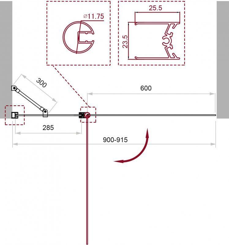 - Габариты с регулировками: 900-915 мм
