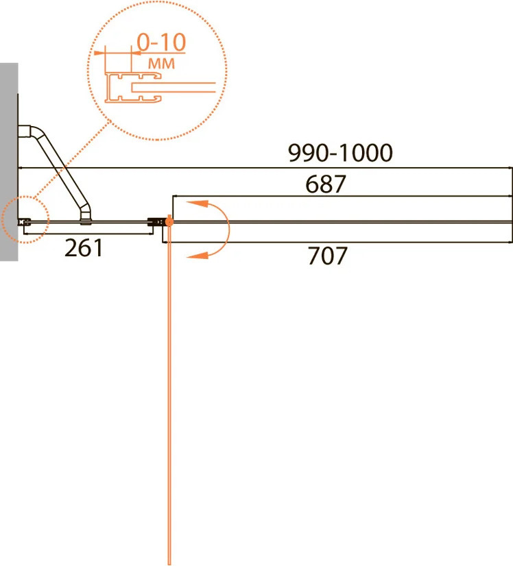 - Регулировка ширины: предусмотрена за счет бокового профиля