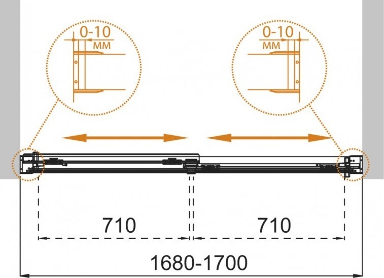 - Регулировка ширины предусмотрена за счет боковых профилей