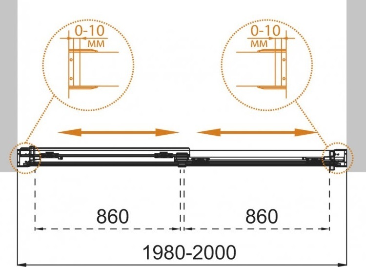 - Регулировка ширины предусмотрена за счет боковых профилей