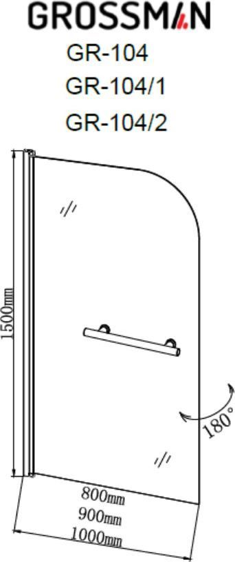 Шторка для ванны Grossman 1000х1500 мм GR-104/2, хром/прозрачное