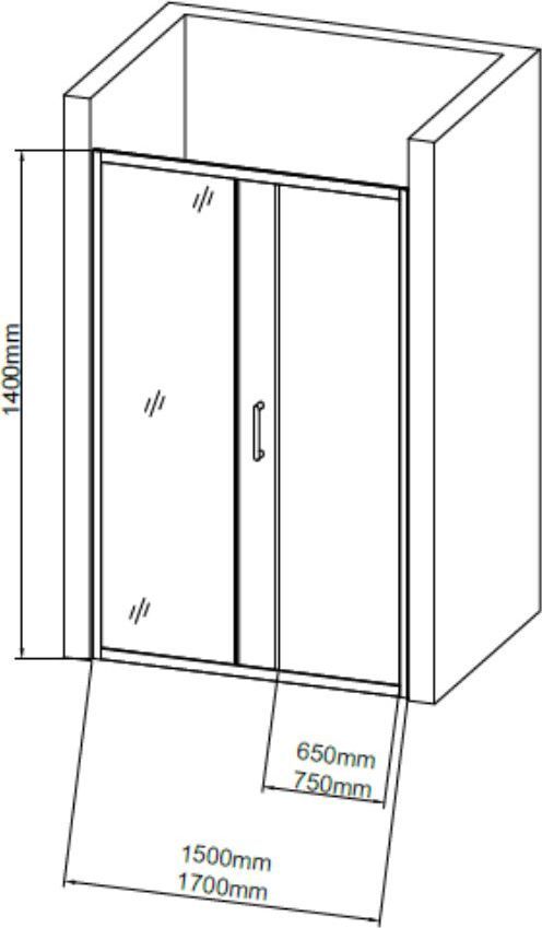 Шторка для ванны Grossman, размер 1500х1400 мм, профиль хром, стекло прозрачное 6 мм.