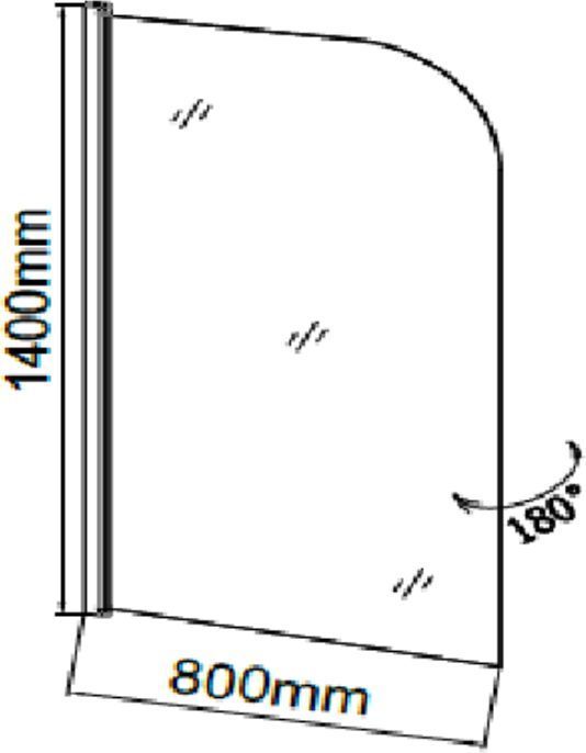 Шторка для ванны Grossman, размер 800х1400 мм, профиль хром, стекло прозрачное 6 мм.