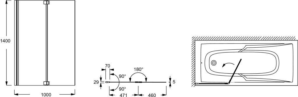 Шторка для ванны Jacob Delafon Adequation E4931-GA 1000х1400 мм. Цвет профиля – хром, цвет стекла – прозрачное, 6 мм.