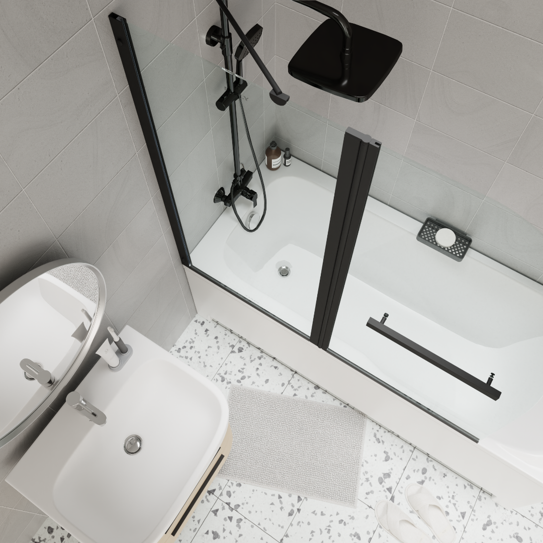 Шторка для ванны Parly F03B, размер 120х130 см, профиль чёрный, стекло прозрачное.