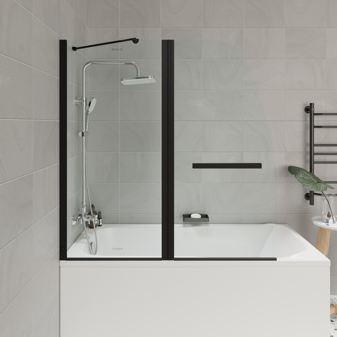 Шторка для ванны Parly 120 см F03B, чёрный/прозрачное