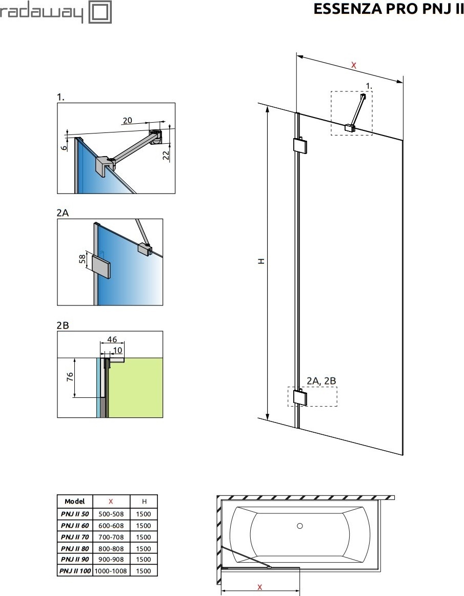 Шторка для ванны Radaway Essenza Pro Gold PNJ II 800х1500 мм. Цвет профиля – золото, цвет стекла – прозрачное, 6 мм.