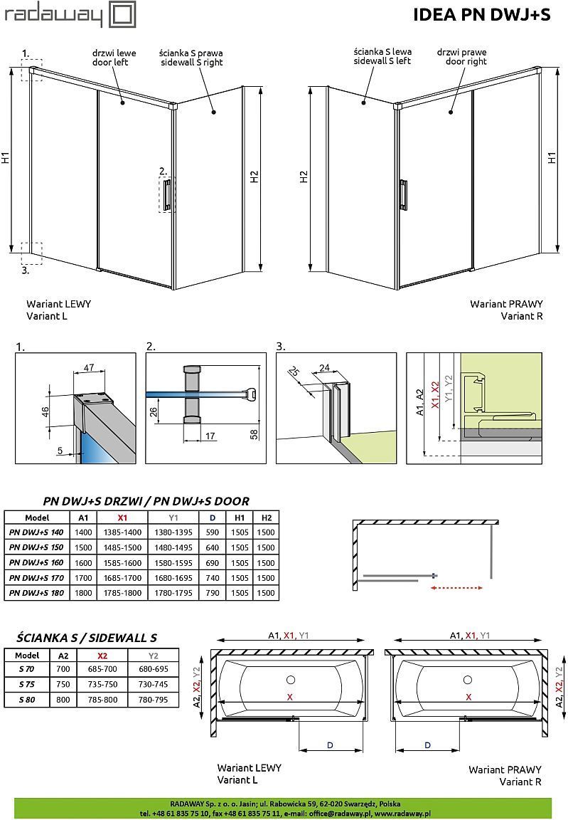 Шторка для ванны Radaway Idea Black PN DWJ+S 1600x800x1500 мм. Цвет профиля – черный, цвет стекла – прозрачное, 6 мм. Размеры с диапазоном регулировок: (1585-1600)x(785-800) мм. Ширина входа: 690 мм.