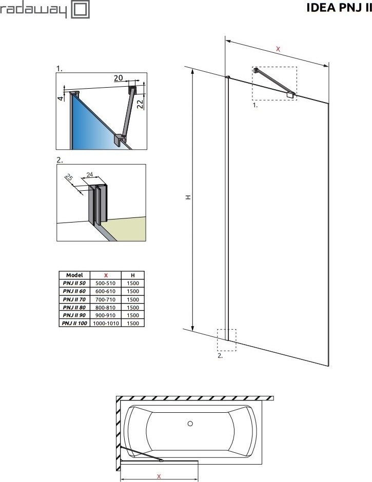 Шторка для ванны Radaway Idea Black PNJ II 700х1500 мм. Цвет профиля – черный, цвет стекла – прозрачное, 6 мм.