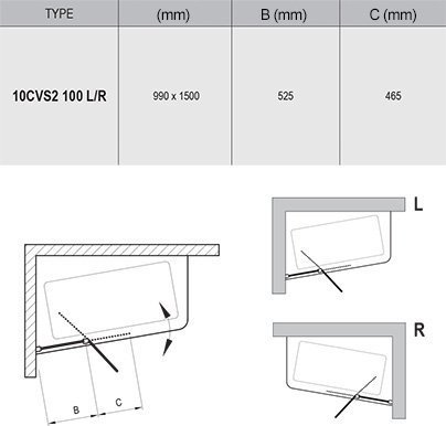 Шторка для ванны Ravak 10° 10CVS 100 см, расположение правостороннее. Профиль - блестящий, витраж - Transparent. Поворотный механизм позволяет складывать штору как вовнутрь ванны, так и наружу.