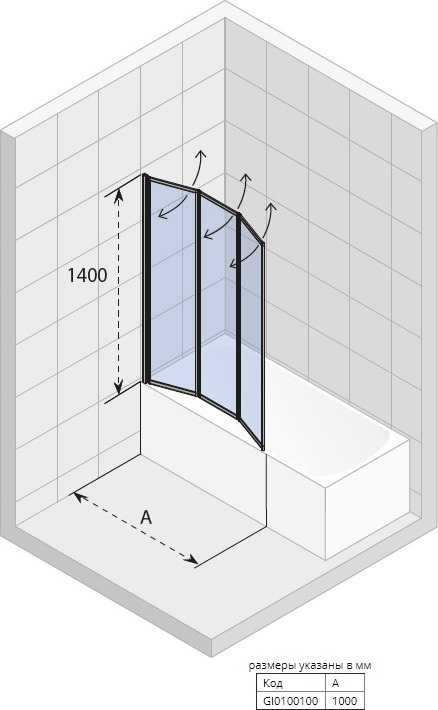 Шторка для ванны Riho Alta 1400x1000x4 мм.