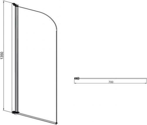 Шторка для ванны Sole Life 2 700x1350 мм. Профиль хром, cтекло прозрачное 6 мм.