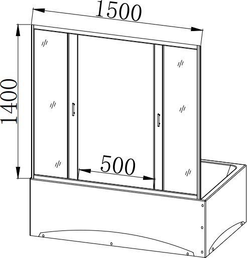 Шторка для ванны Taliente TA-1514CB 1500х1400 мм. Цвет профиля – черный, цвет стекла – прозрачное, 6 мм, ширина входа - 500 мм.