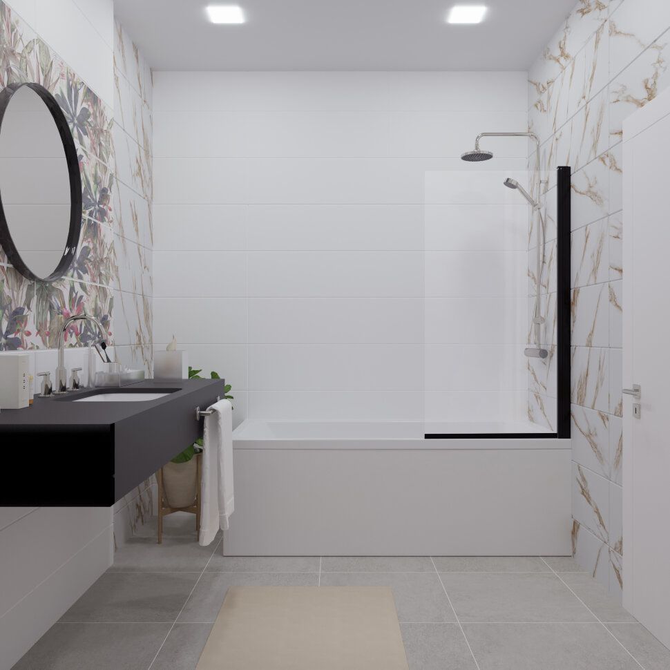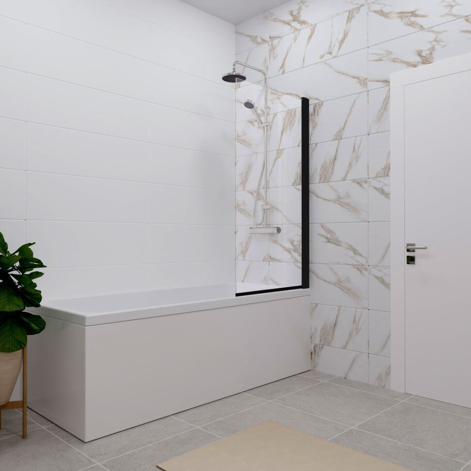 Шторка для ванны Triton Соло, чёрный/прозрачное