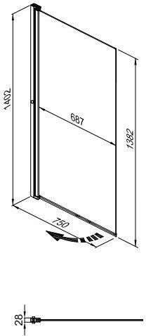 Шторка для ванны Triton Соло, размер 750х1400 мм. Профиль чёрный, стекло прозрачное.