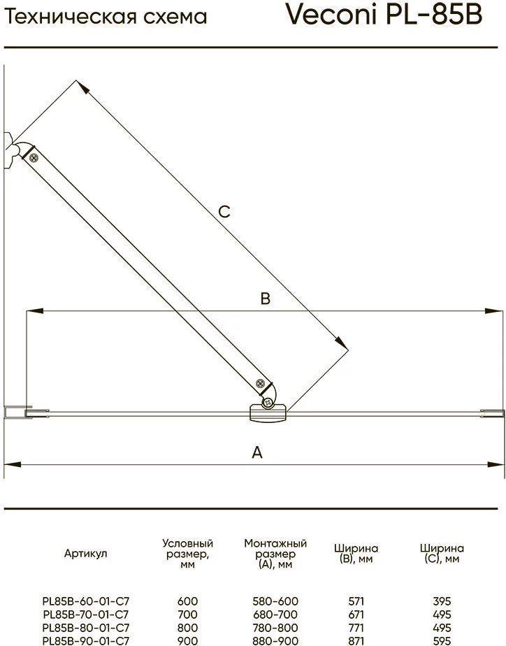 Характеристики Душевая шторка Veconi (PL85G-80-01-C7)