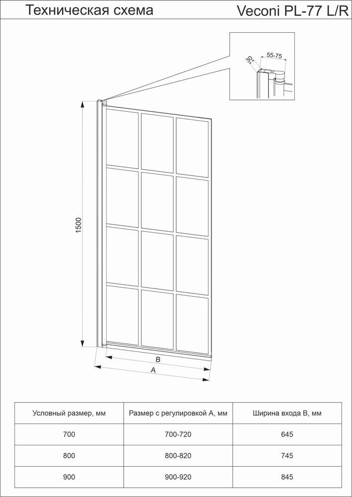 Описание Душевая шторка Veconi PL77R-70-01-C6