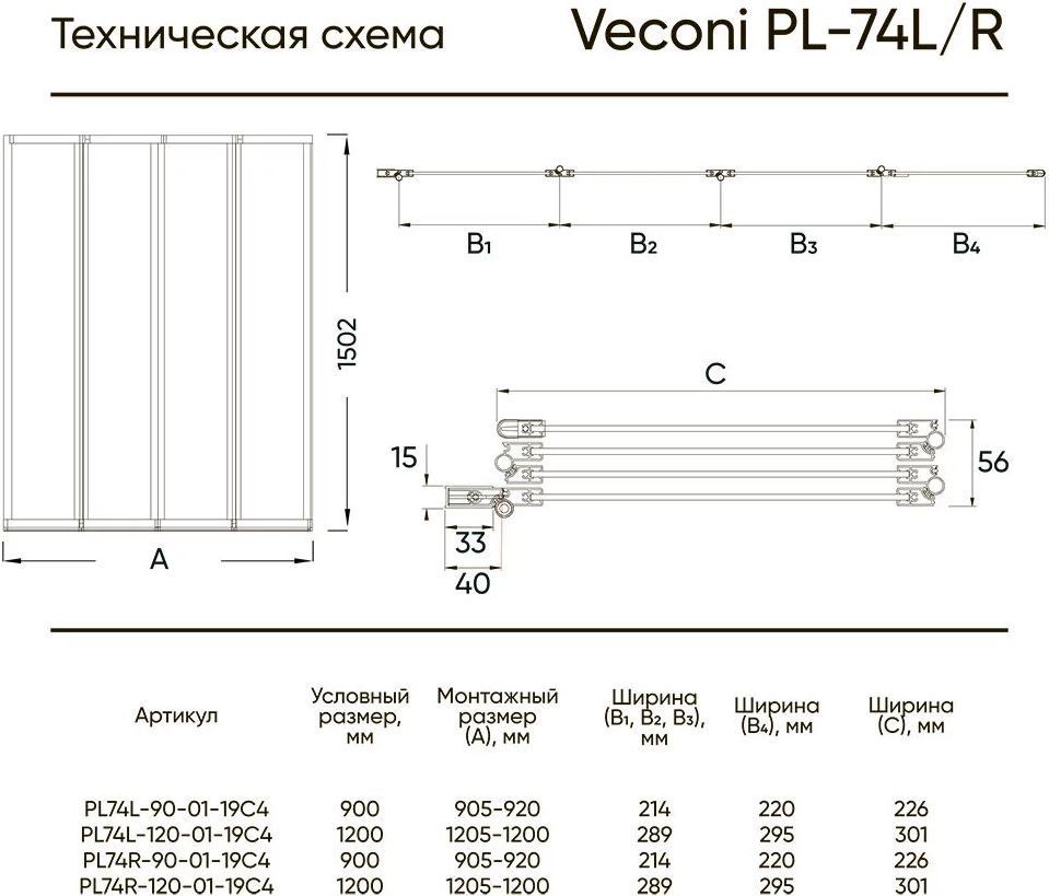 Описание Душевая шторка Veconi PL74BR-90-01-19C4