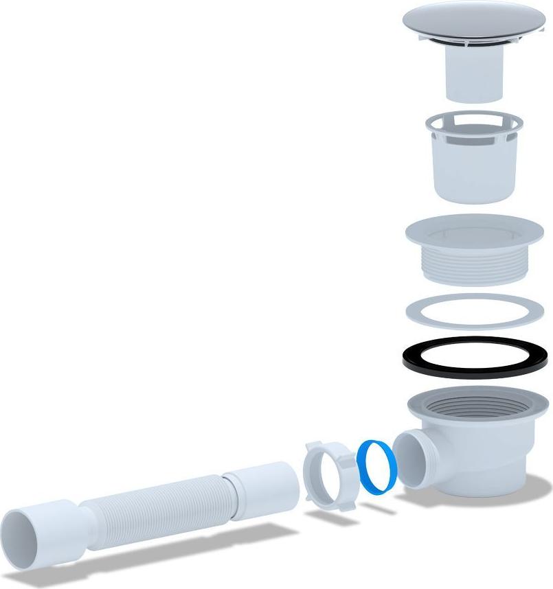 - Сверхнизкая высота (53 мм) позволяет устанавливать сифон в душевых поддонах с ограниченным пространством под ними, что делает его идеальным для современных душевых кабин с низким поддоном.