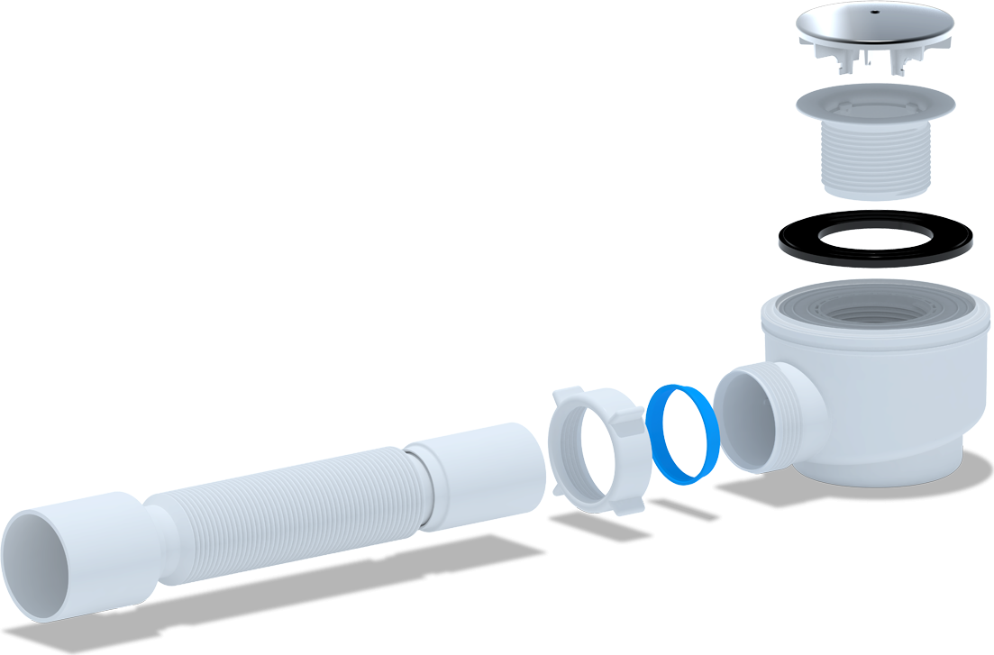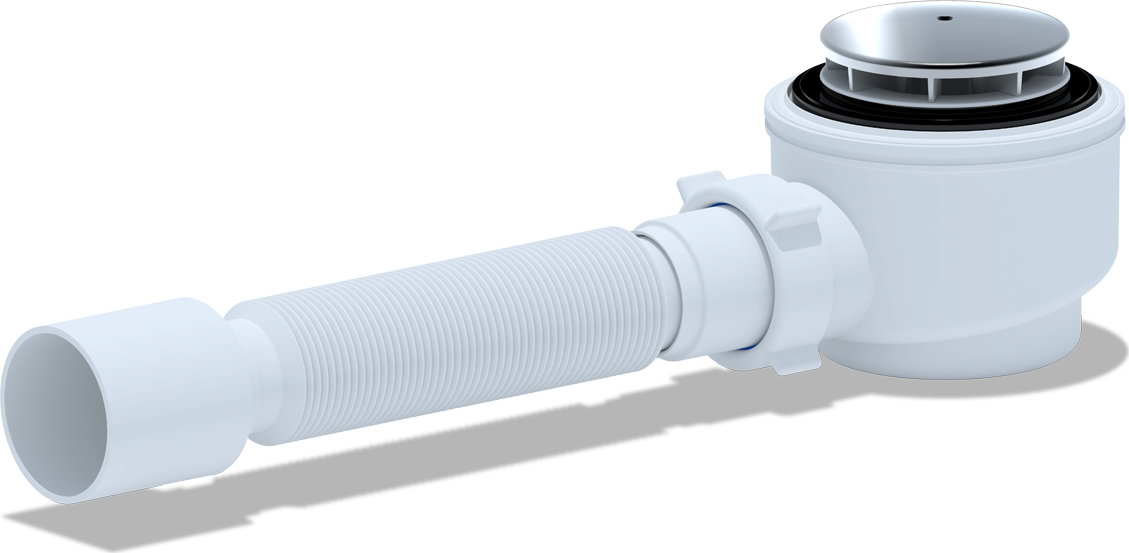 - Компактная конструкция позволяет установить сифон даже в условиях ограниченного пространства под душевым поддоном, что особенно актуально для небольших ванных комнат и душевых кабин.