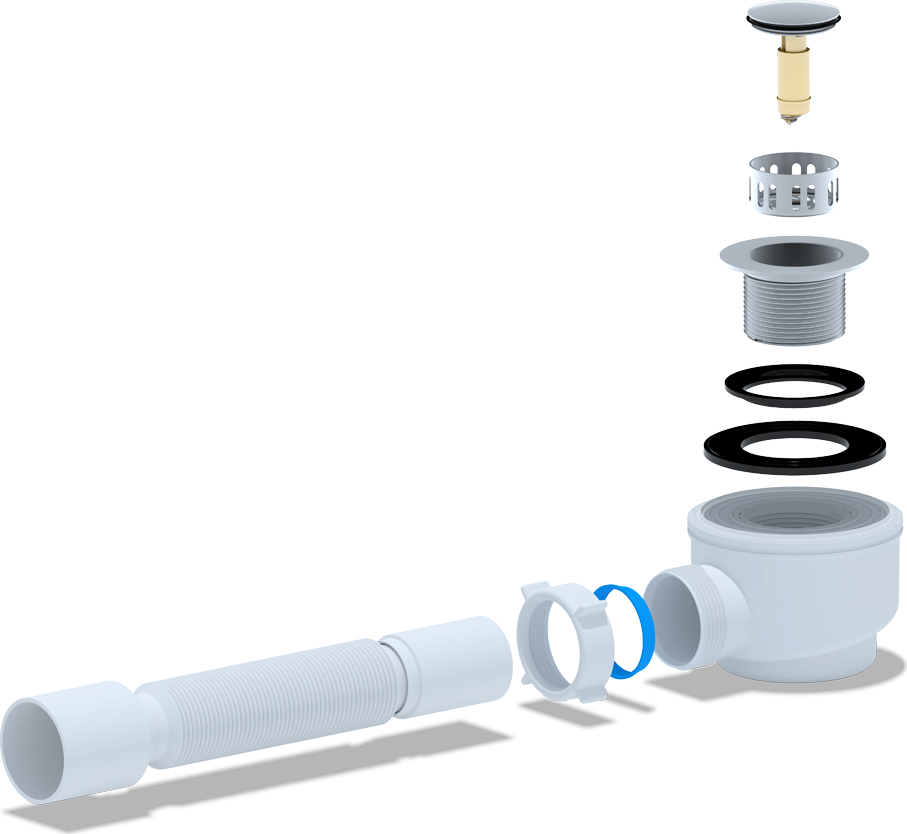 - Компактная конструкция позволяет установить сифон даже в условиях ограниченного пространства под душевым поддоном, что особенно актуально для небольших ванных комнат и душевых кабин.