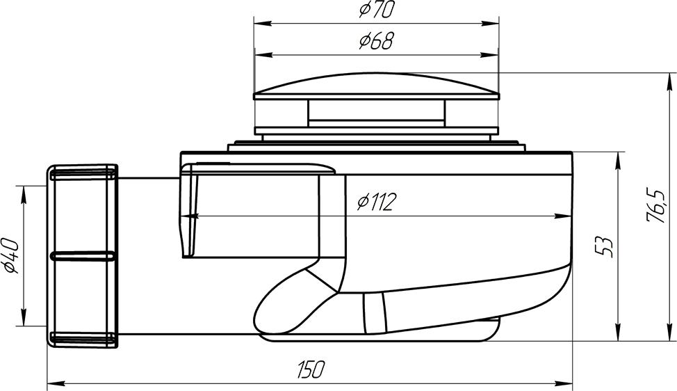 Сверхнизкая высота (53 мм) позволяет устанавливать сифон в душевых поддонах с ограниченным пространством под ними, что особенно актуально для современных ванных комнат.