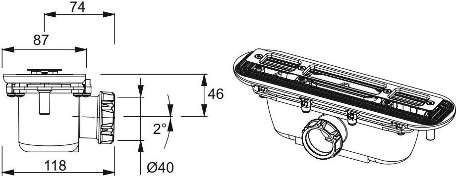 - Подключение к канализационной трубе: 4 см