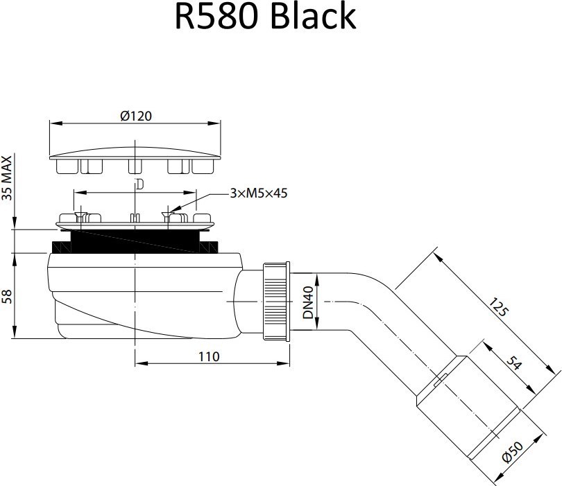 Cифон для душевого поддона со сливным отверстием Ø90 мм. Диаметр сливной трубы 40/50 мм. Цвет черный.