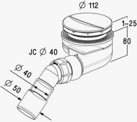 Cифон для душевого поддона со сливным отверстием 90 мм. Диаметр сливной трубы 40/50 мм. Цвет белый.