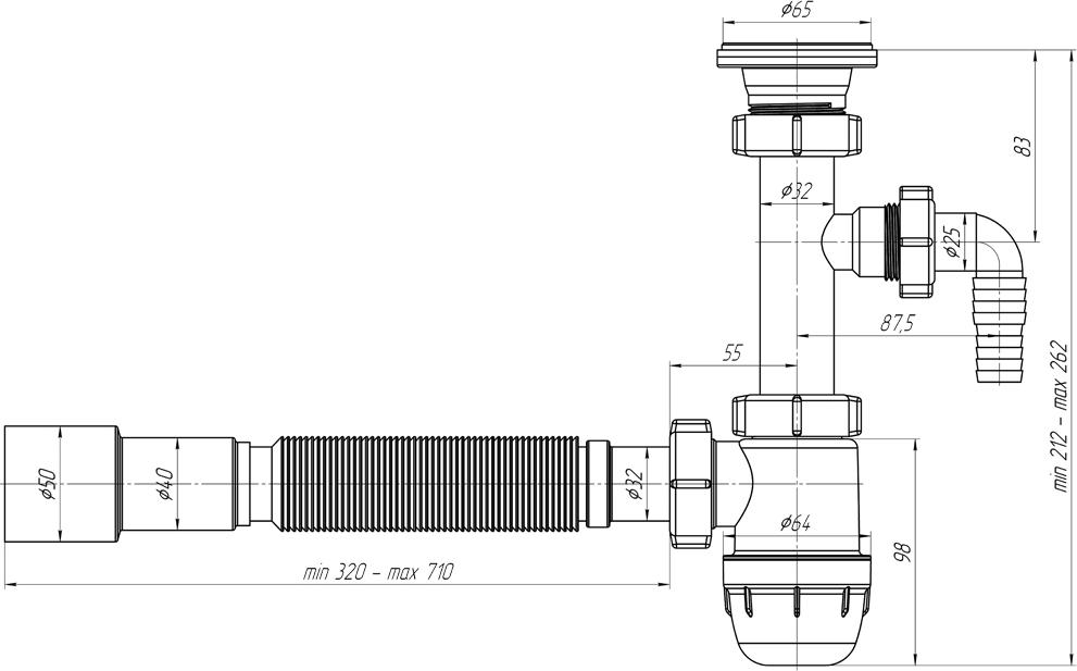 - Гибкая труба 32х40/50 мм обеспечивает удобство подключения к канализационной системе даже в условиях ограниченного пространства и нестандартной конфигурации, упрощая процесс установки и экономя время и усилия.
