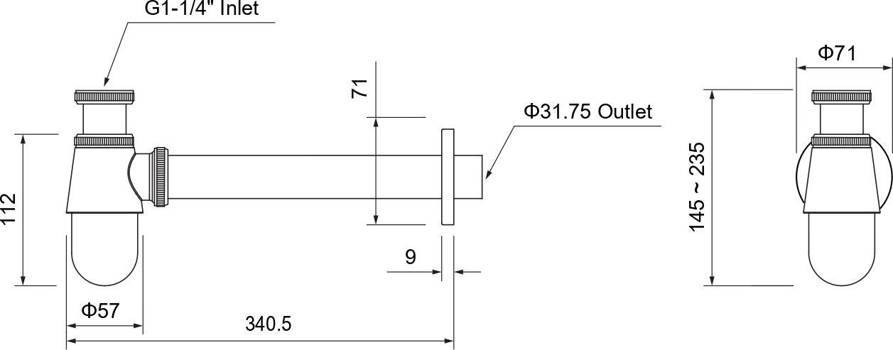 - для умывальника под донный клапан