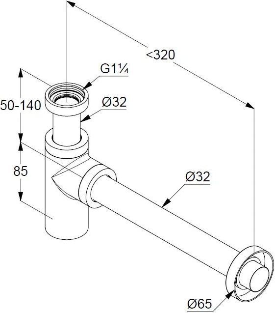 Сифон для умывальника Kludi 1002039-00, материал - латунь, цвет - черный матовый.