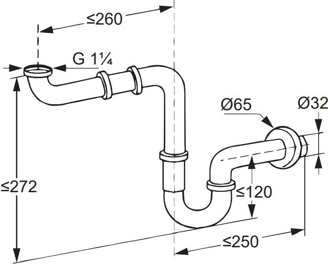- сифон G 1 1/4 (монтаж в труднодоступных местах)
