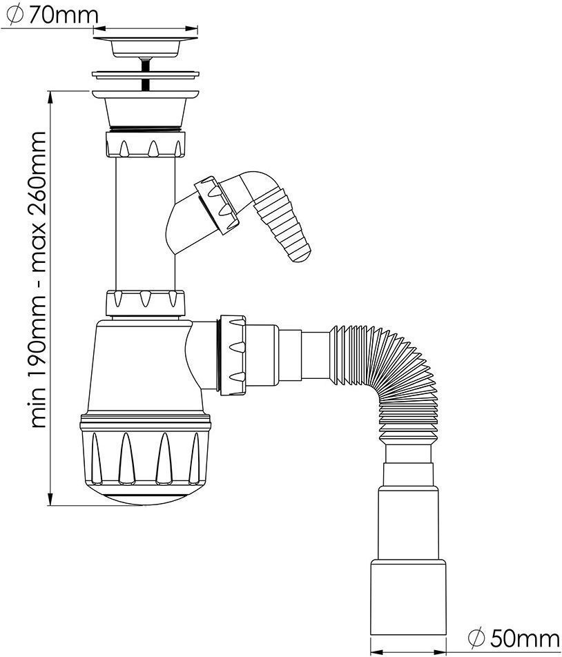 Сифон для умывальника Nova 1054, материал пластик.