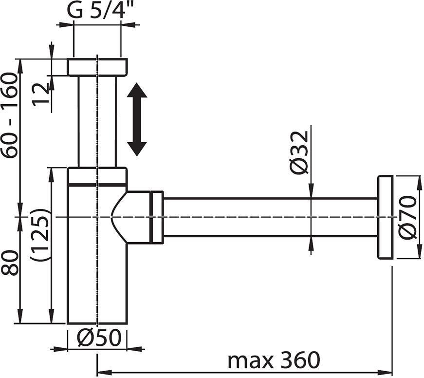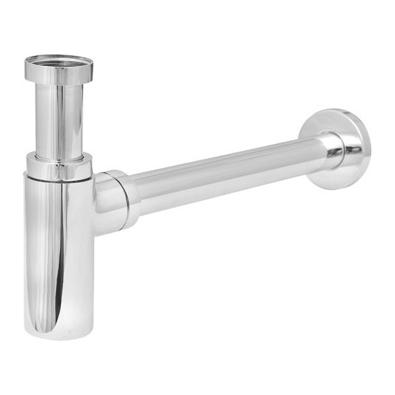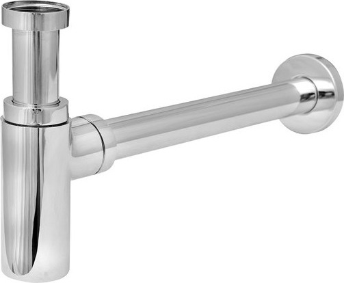 Сифон для умывальника хромированный под донный клапан DN32, цельнометаллический, круглый.