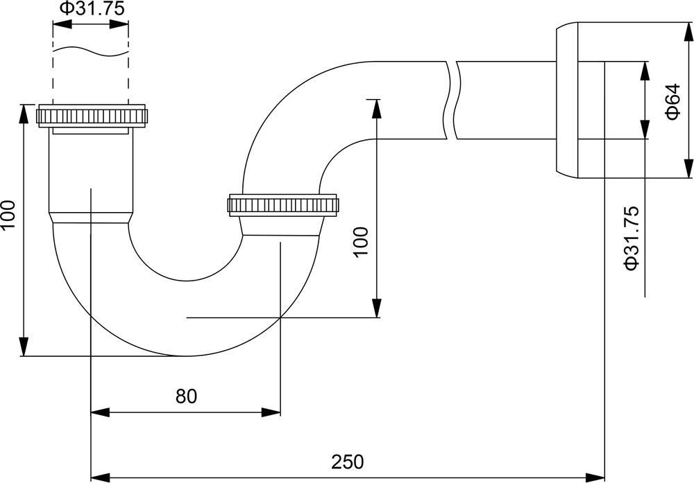 Сифон для умывальника Timo 961/00L, материал латунь, цвет хром.