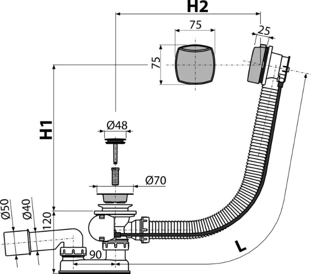 Сифон для ванны AlcaPlast A51CR 57 см пластик