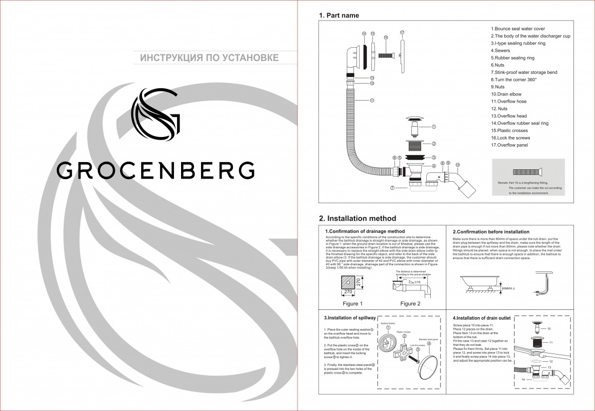 Описание для ванны click/clack Grocenberg GB230BR