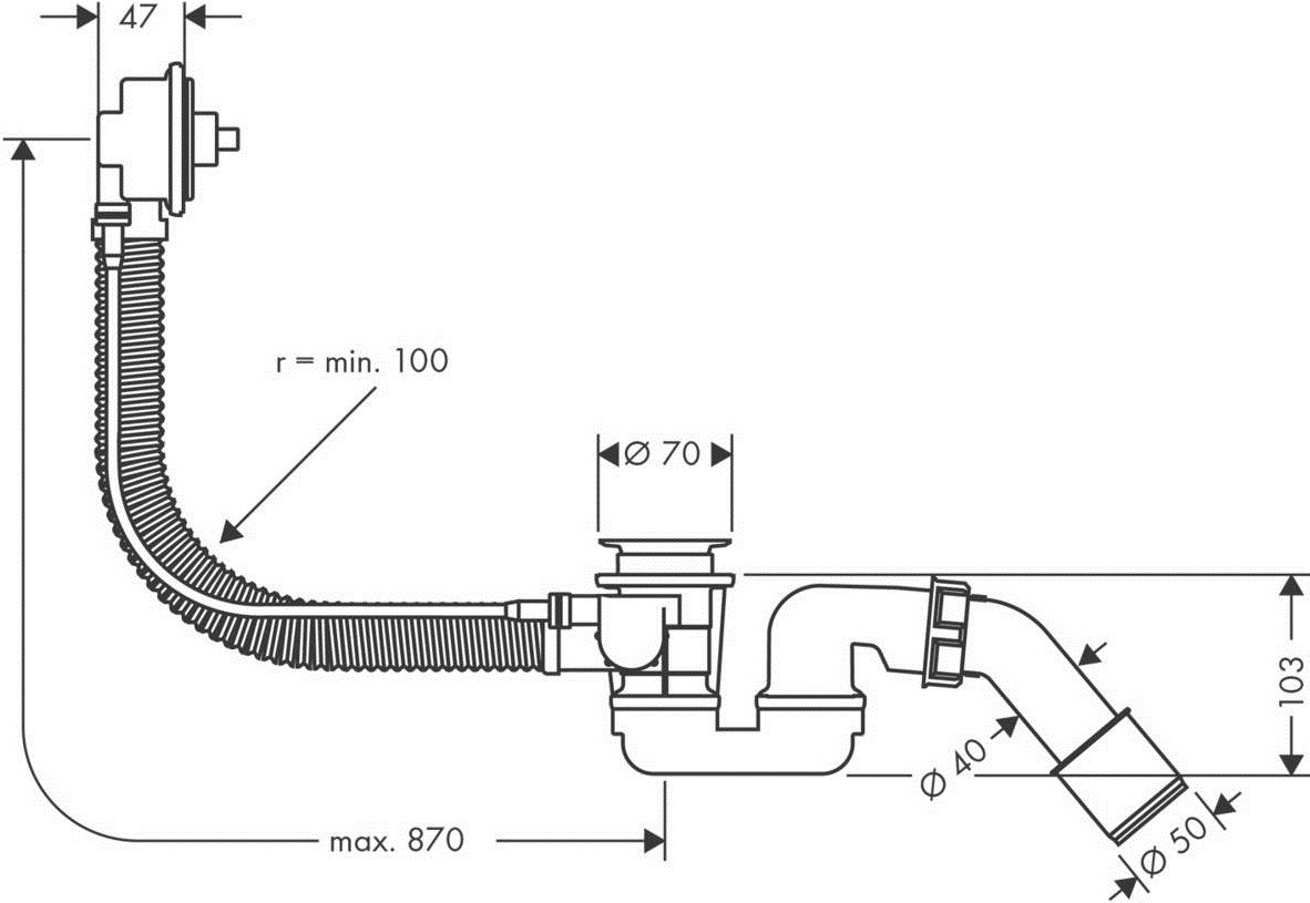 Сифон для ванны Hansgrohe Flexaplus 58141180 автомат.