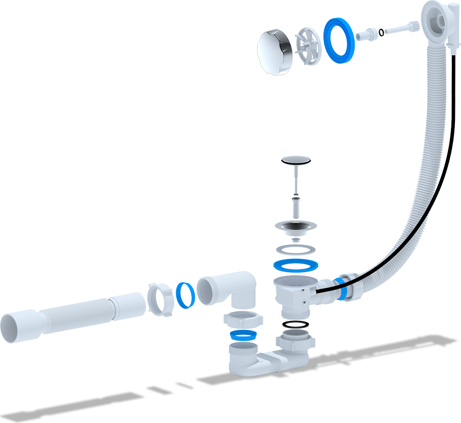 - Плоский сифон позволяет сэкономить пространство под ванной, что особенно актуально в небольших ванных комнатах.