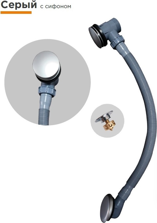 Сифон для ванны Радомир, автомат (с сеточкой), цвет серый.
