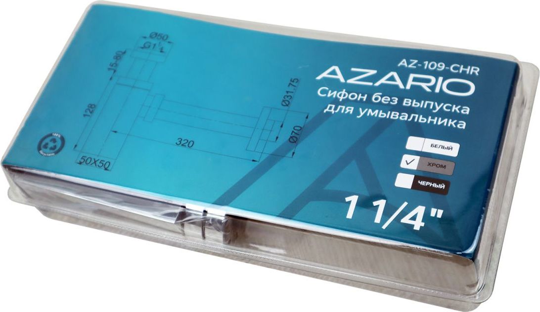 Сифон универсальный Azario G1 1/4 AZ-109-CHR, материал латунь, цвет хром.