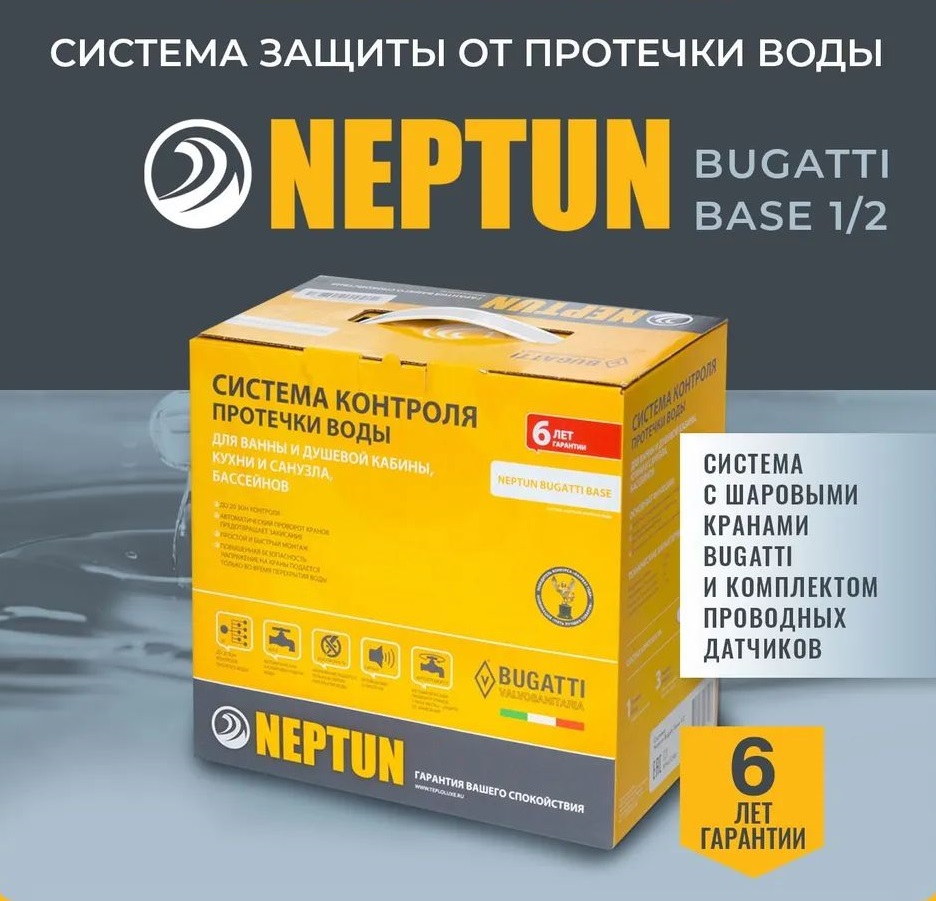 Система защиты от протечек воды 1/2 Нептун Neptun Bugatti Base 2 крана, 3 проводных датчика 100035530000.