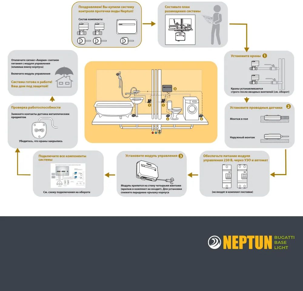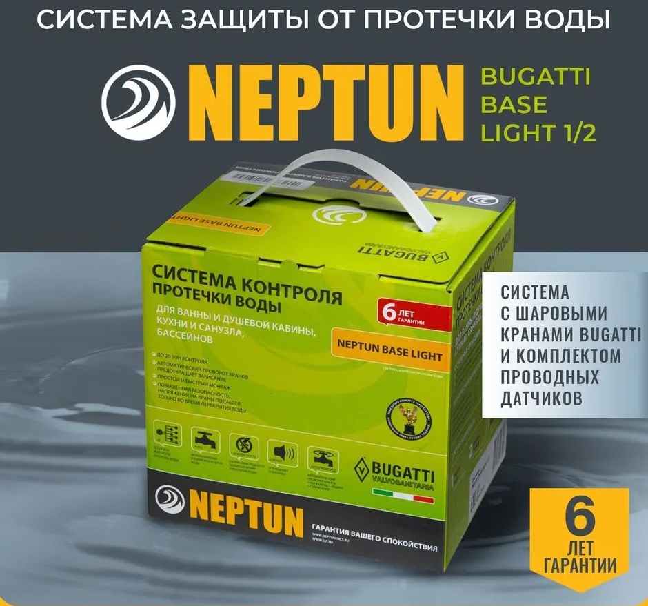 Система защиты от протечек воды 1/2 Нептун Neptun Bugatti Base Light 1 кран, 2 проводных датчика 100035511900