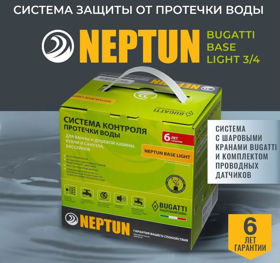 Система защиты от протечек воды 3/4 Нептун Neptun Bugatti Base Light 1 кран, 2 проводных датчика 100035512000.
