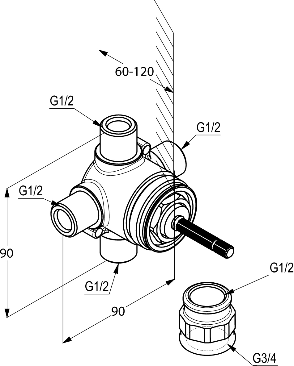 Скрытая часть Kludi Ambienta DN 15 29757, материал - латунь.