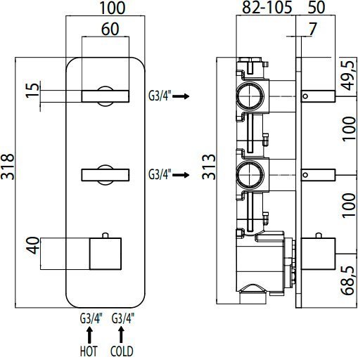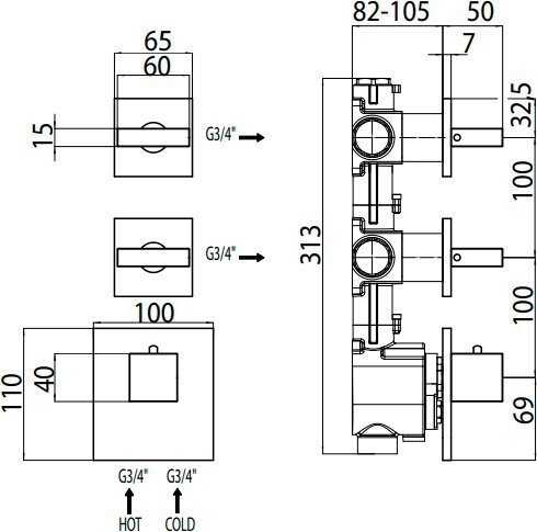 Скрытая часть на 3 выхода Bossini HighFlow Z030203000