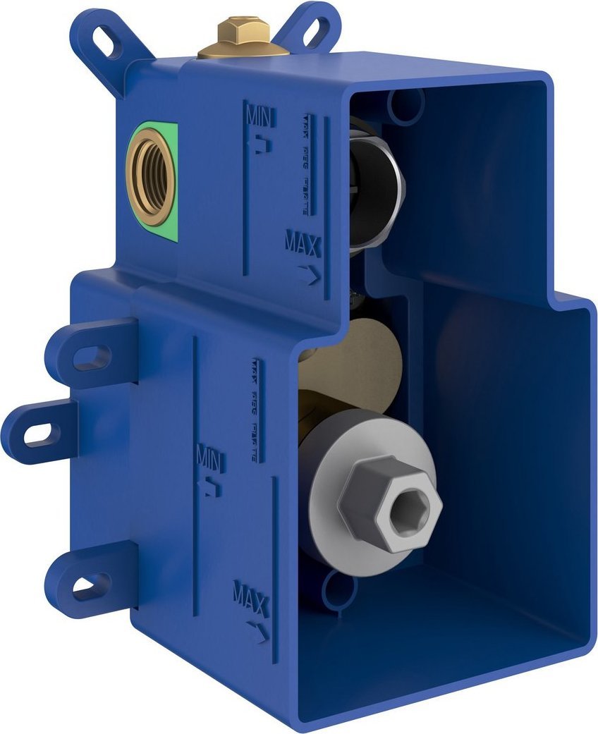 R-box — это универсальная система установки, встраиваемая в стену и предназначенная для 2- и 3-ходовых скрытых смесителей. Нижняя часть смесителя, встроенная в R-box, изготовлена из высококачественной латуни, как и верхняя часть смесителя. В отличие от традиционных скрытых смесителей, установка R-box намного проще, как и возможная замена верхней видимой части. Верхняя видимая часть 2- и 3-рычажных скрытых смесителей серий Espirit и Eleganta устанавливается только после завершения ремонта в ванной комнате. Поэтому вы можете быть уверены, что смеситель не повредится до окончания ремонта и не исчезнет полностью во время работ.