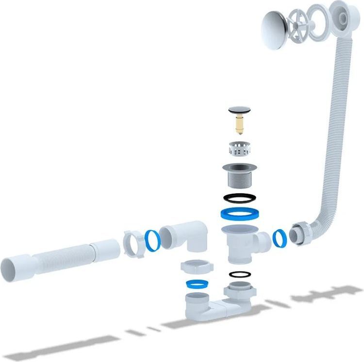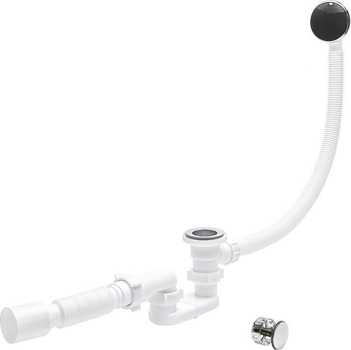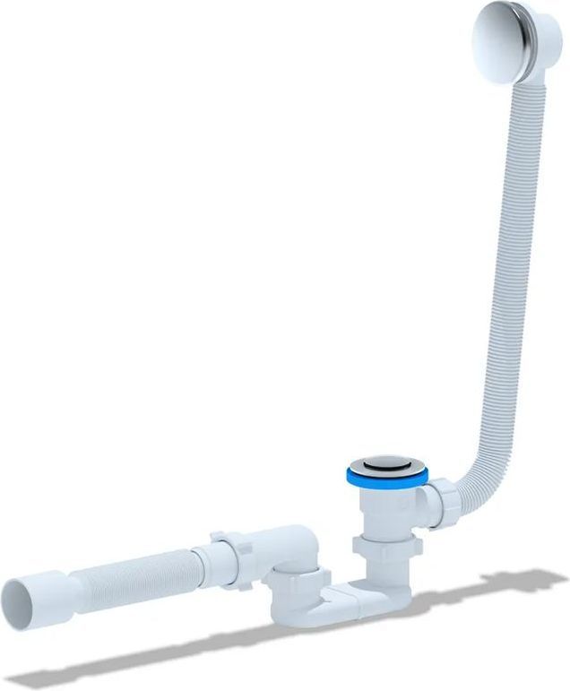 Слив-перелив Ани Пласт EC055S для ванны клик-клак плоский с выпуском и переливом, с сеткой, материал пластик, цвет белый.