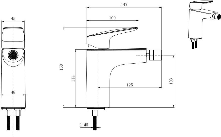 - подходит к большинству биде однорычажная система регулировки силы струи и температуры воды